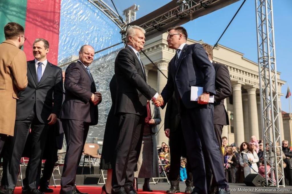 Podczas drugiego dnia wizyty w Wilnie marszałek Sejmu Szymon Hołownia wziął udział w uroczystościach upamiętniających 35. rocznicę Odrodzenia Niepodległości Litwy. Obchody rozpoczęły się od uroczystych wystąpień w Sejmie Republiki Litewskiej.